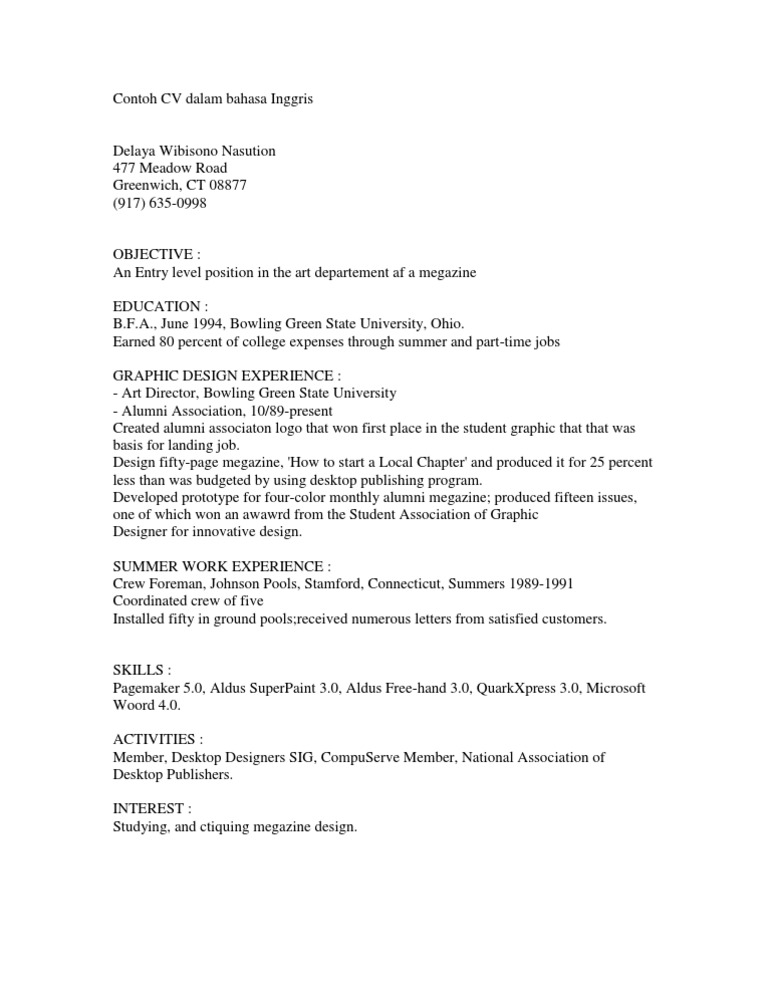 Contoh cv lamaran kerja dalam bahasa inggris anakui com.